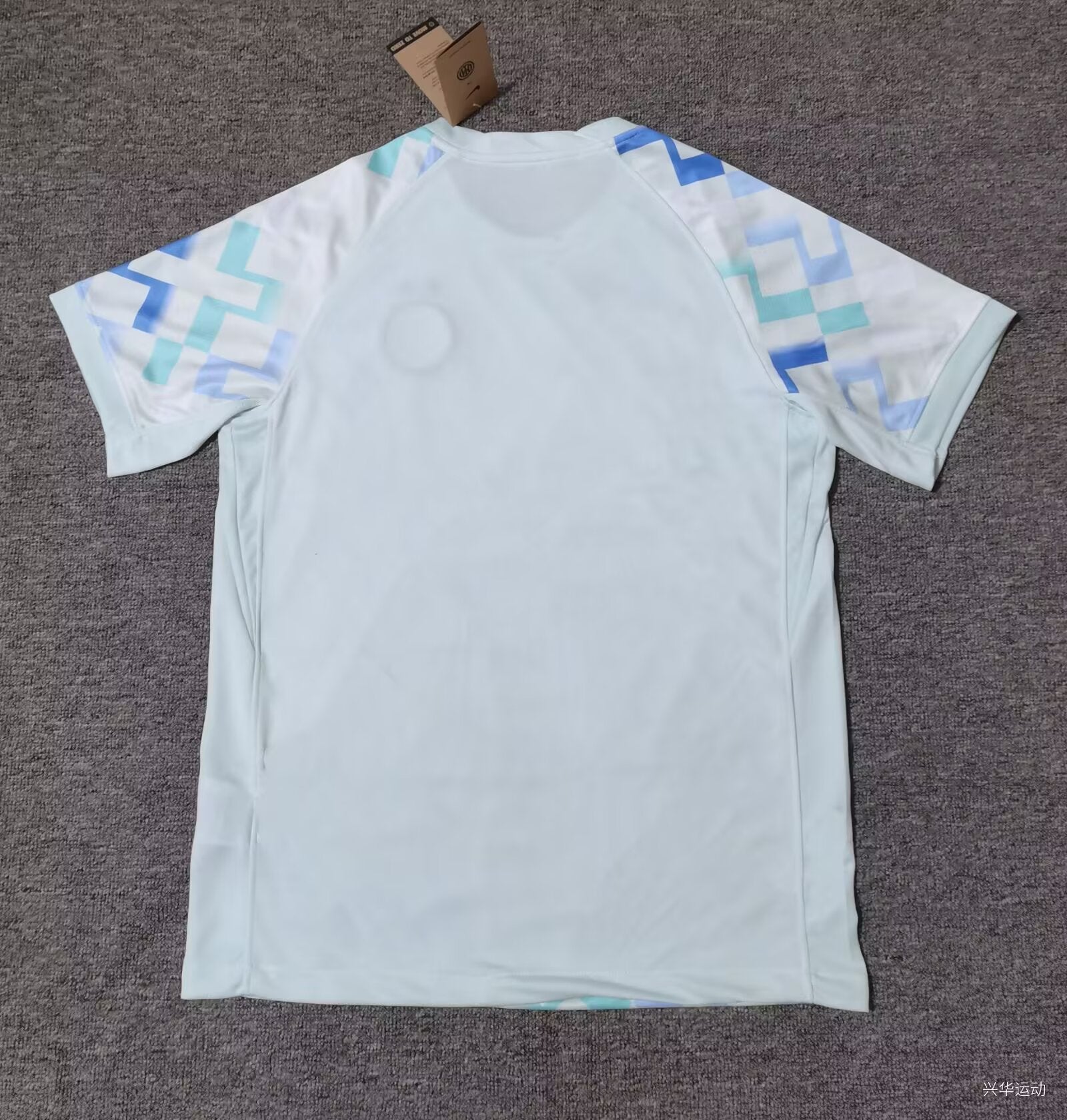 Featuring a layered geometric design in various shades of Ghost Aqua, the jersey pays homage to the art of Italian textile making and the notion that diversity strengthens a team.
